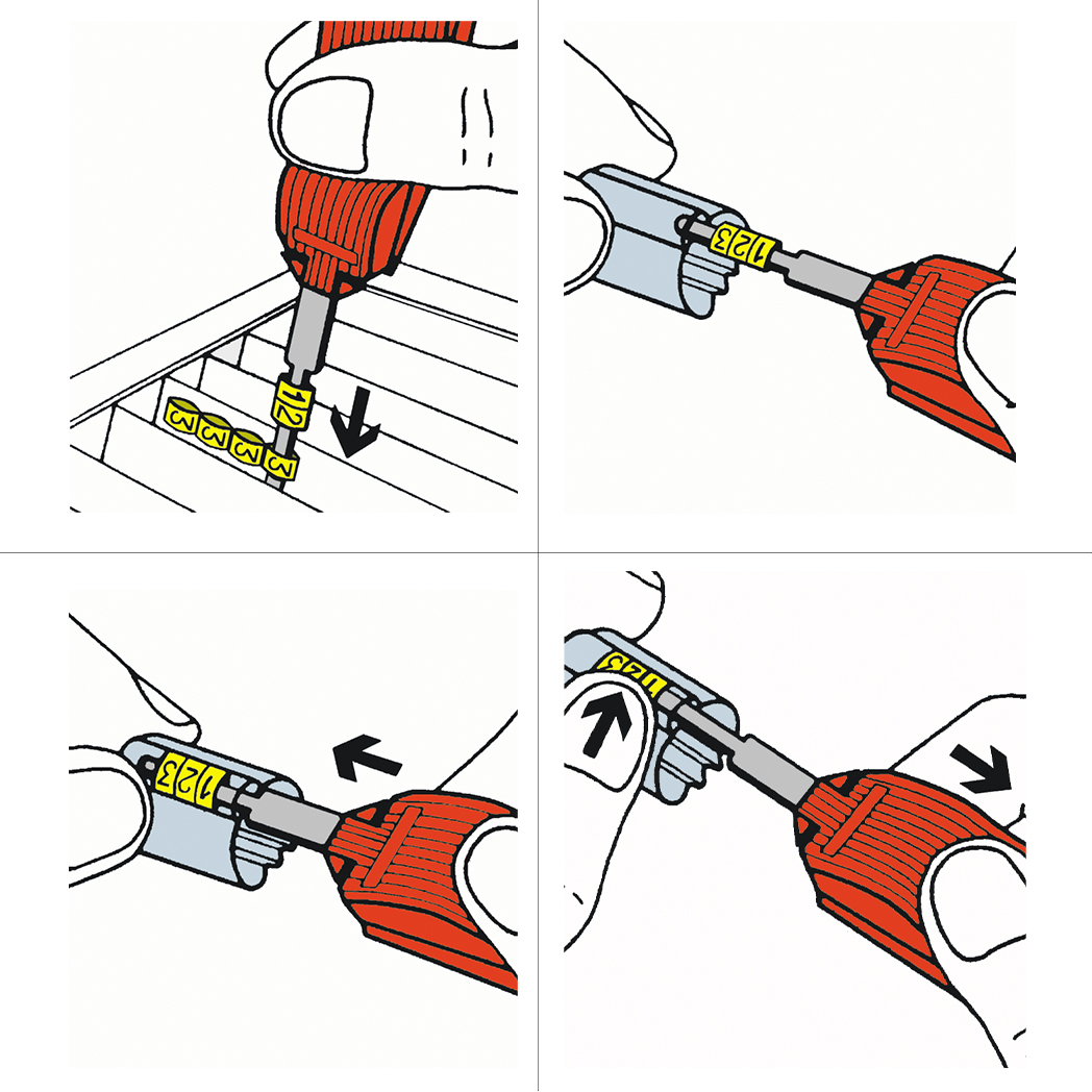 A system for different applications. Create your own marks on site. Character strips for marking with collars for both cable, wire and component marking.