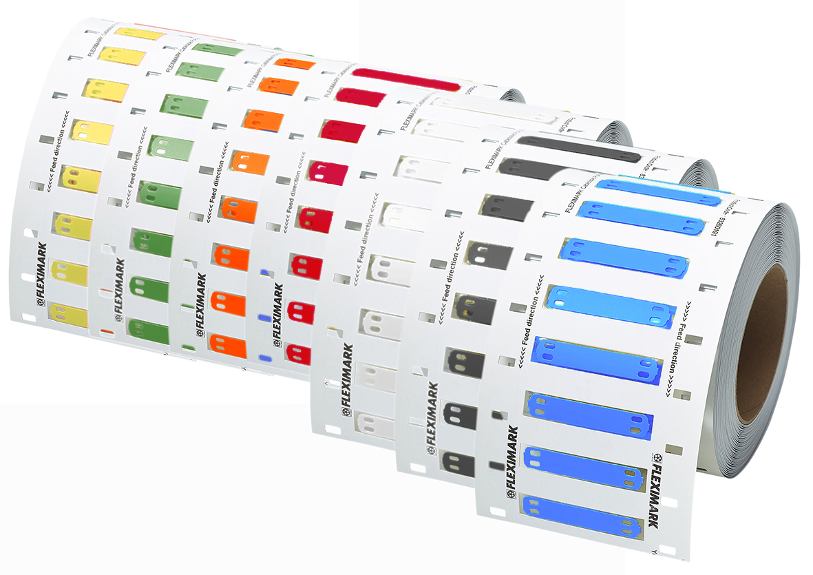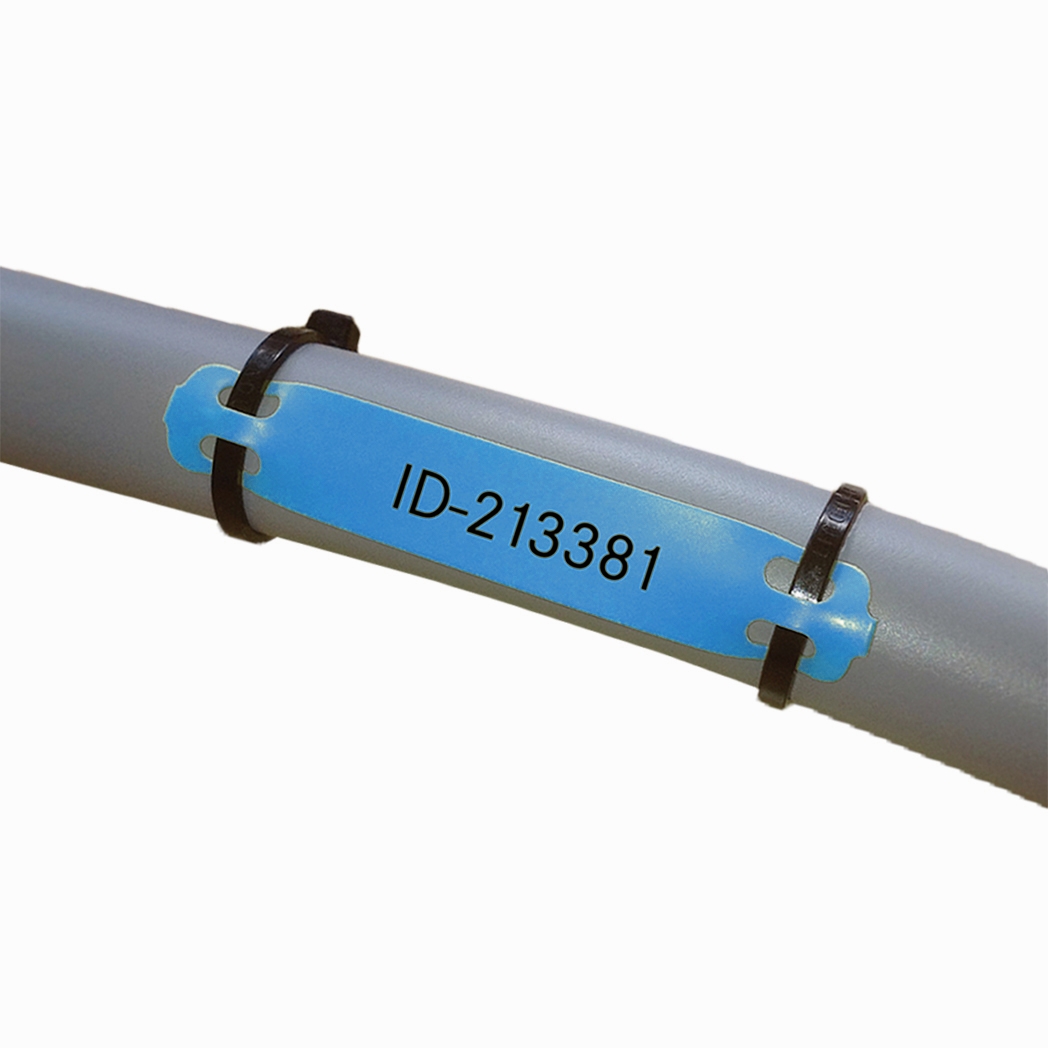 For cable and pipe marking. Mounted with cable ties. Prints on thermal transfer printers such as cab EOS/SQUIX. Halogen-free and flame protected. UV resistant.