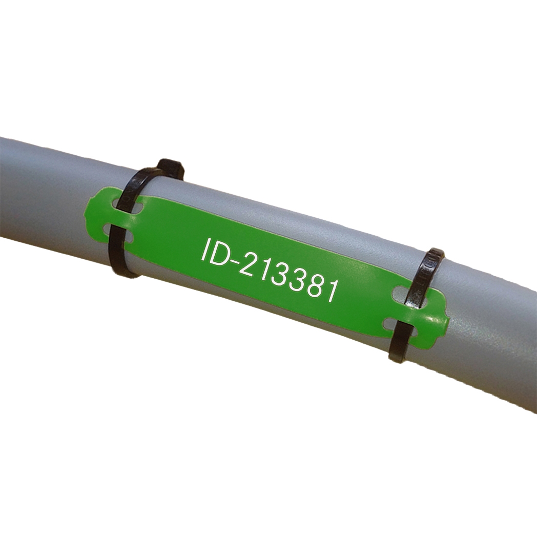 For cable and pipe marking. Mounted with cable ties. Prints on thermal transfer printers such as cab EOS/SQUIX. Halogen-free and flame protected. UV resistant.