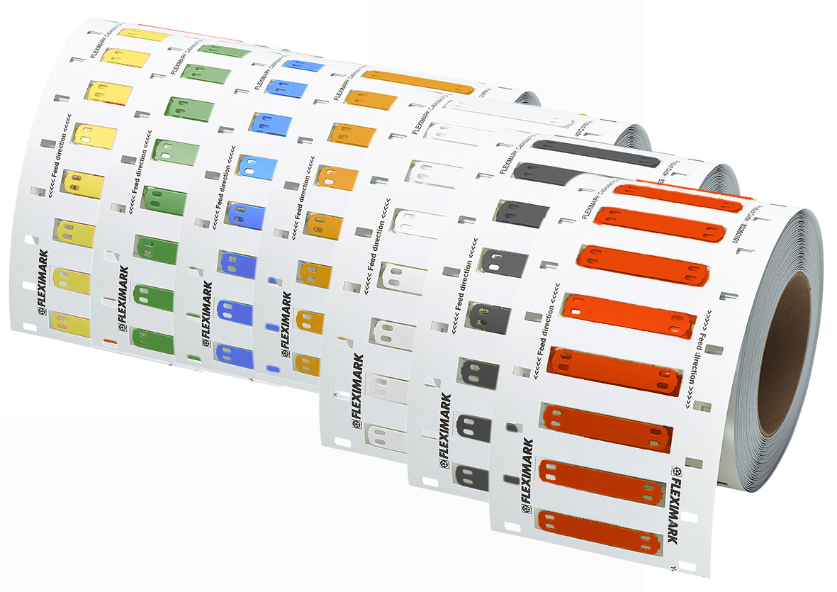 For cable and pipe marking. Mounted with cable ties. Prints on thermal transfer printers such as cab EOS/SQUIX. Halogen-free and flame protected. UV resistant.