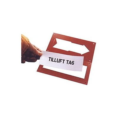 Quick and easy ventilation labeling with transparent arrow windows for self-produced text labels. Can be attached to both pipes and ducts. Meets the requirements of SS741 and VVS AMA 98.
