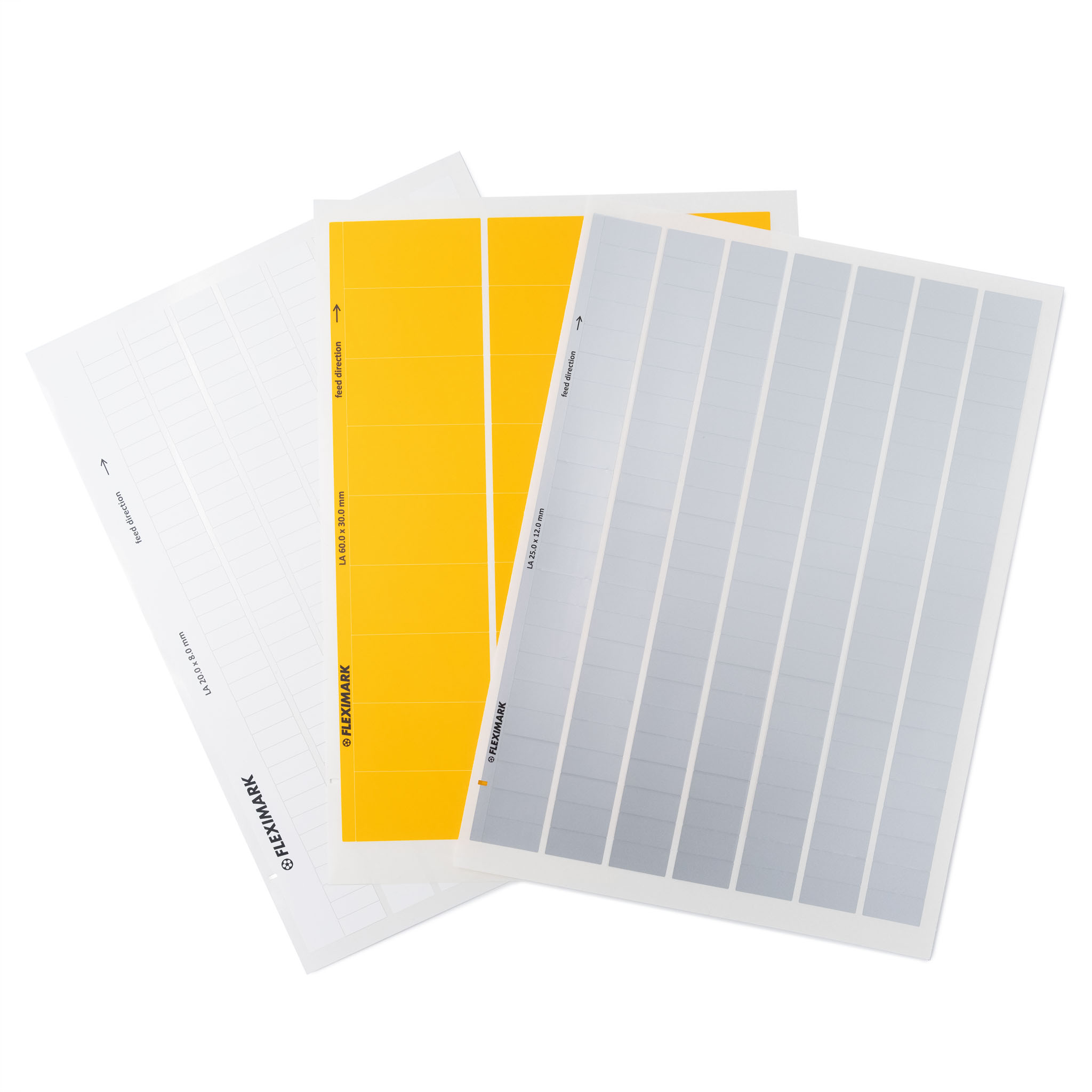 Label for own printing of cable and component markings on a standard laser printer. Delivered self-adhesive on sheets.