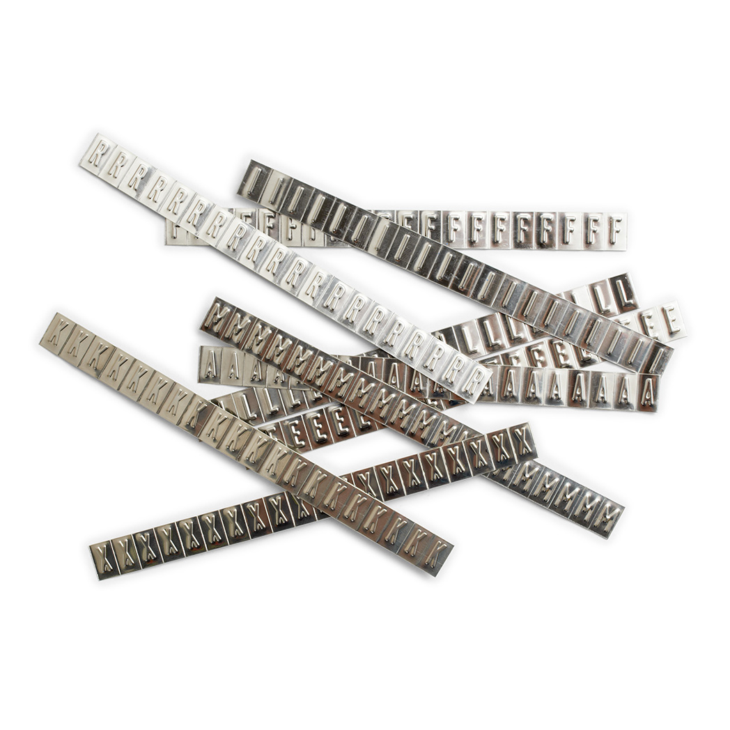 Präglade teckenremsorna innehåller 20 stycken tecken